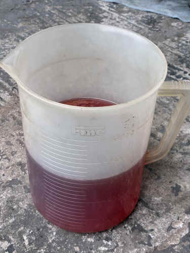 2023年12月 CVTフルードの状況もわからないので交換します。ドラシャ外した時にほとんど出てしまいましたが、整備書の倍近く、抜けました。