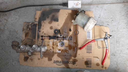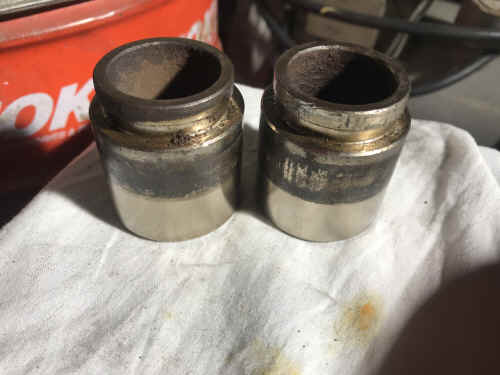前後ロータ交換、ハブ固定ボルト交換、キャリパーOH、ピストン交換、マスターシリンダOH、ブレーキホース交換、キャリパー塗装とできることはすべて実施しました。