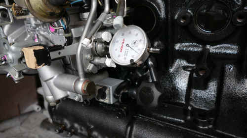 いったんブロックに取付、位置調整をして、再度取り外し、エンジン搭載後に再度取付です。手間はかかりますが、リスクを減らすにはやむなしです。