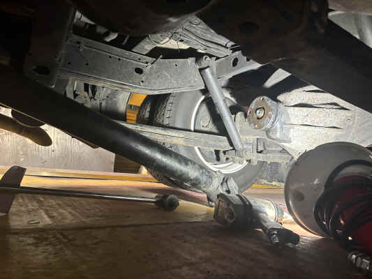 その後、リアに移動して、ショック交換とブレーキホースとブレーキフルード交換です。