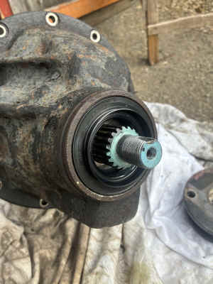 2025年3月 336000km 車庫の床にオイルがたまっており、デフオイルという感じです。オイルシール交換ですが、バックラッシュが大きいので、そちらの調整もしたいです。